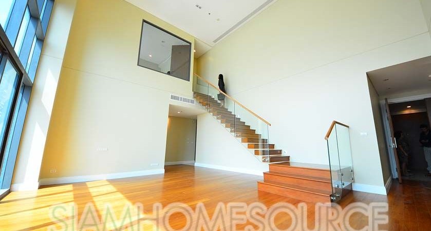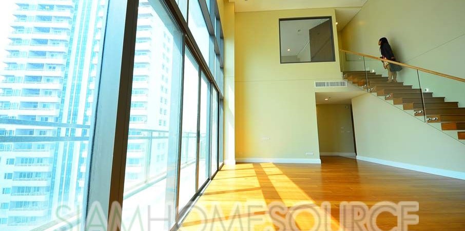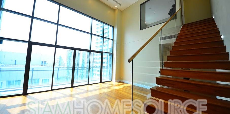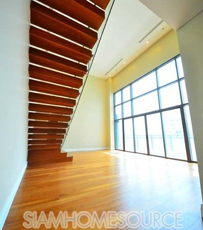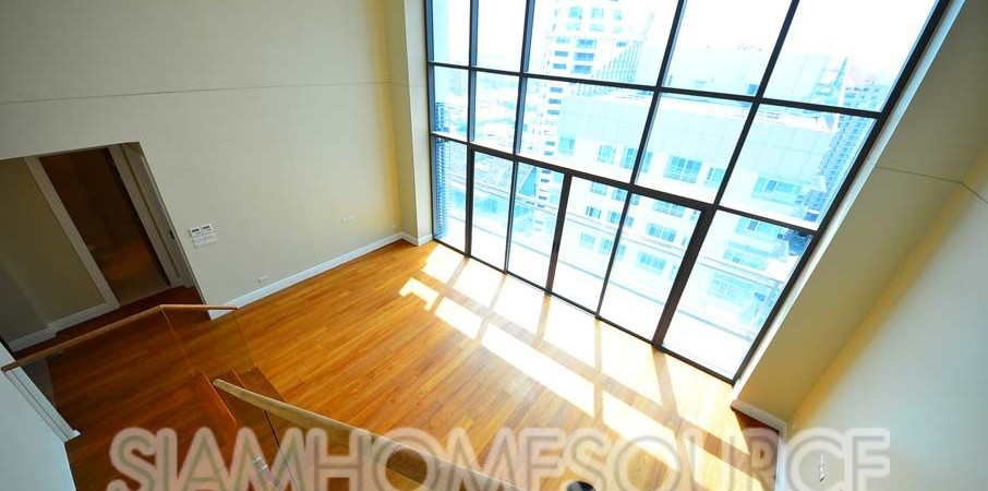Now available in the newly finished Bright Sukhumvit 24 luxury condo is this voluminous duplex unit which features a very sought-after and very rare loft-style layout in Bangkok. The duplex features 162.16 square meters of living space, 2 bedrooms and 3 bathrooms with a spectacularly high ceiling and floor to ceiling windows in the main room. What sets this Phrom Phong duplex apart from other duplexes in Bangkok the loft-style that gives you tremendous volume in the living room which is not sabotaged by any low ceilings.