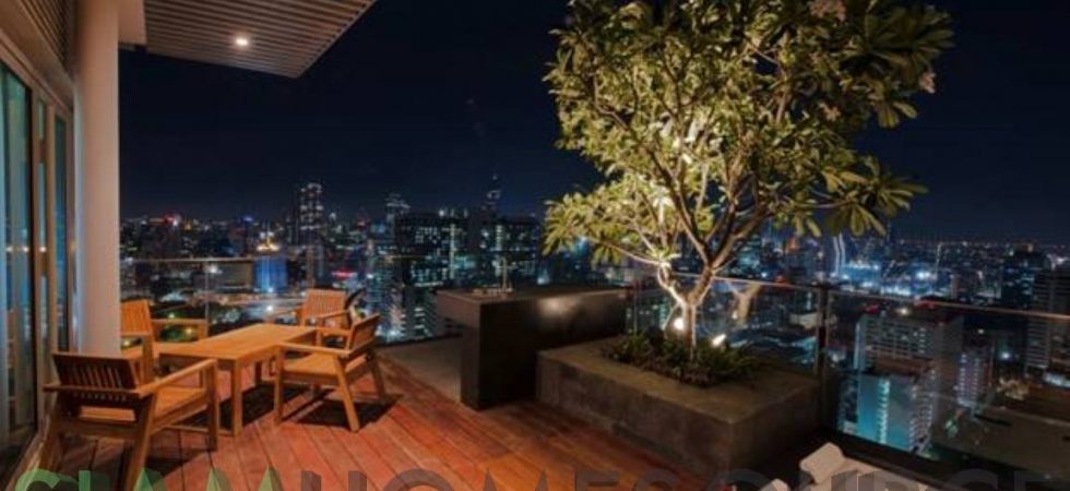 Overlooking the stunning view of Lumpini park and Royal Bangkok Sport Club, this Penthouse duplex Suite located on a high floor, spacious bedrooms with bathrooms ensuite and separate bathroom for guests and visitors on the lower floor, a spacious living room, furnished wooden floor terrace with bar area and private Jacuzzi under the shade of Plumaria tree. Perfectly positioned roof and floor lights around the suite create a unique atmosphere. Beside all of these features, what makes this penthouse becomes one of the most elegant is the modern interior design which harmonized with the best view of Bangkok.