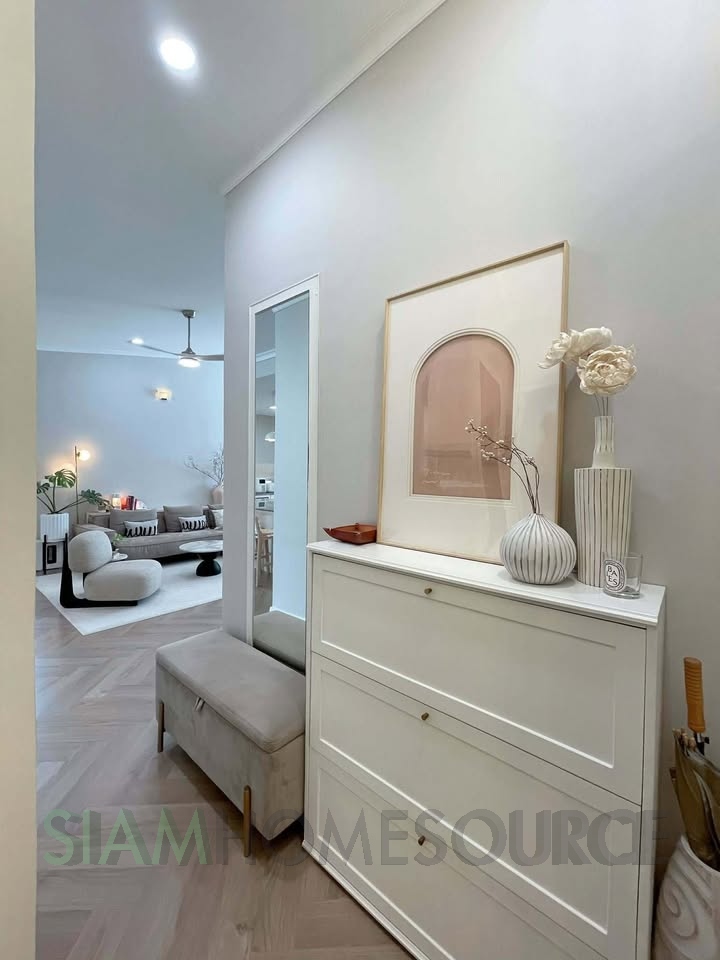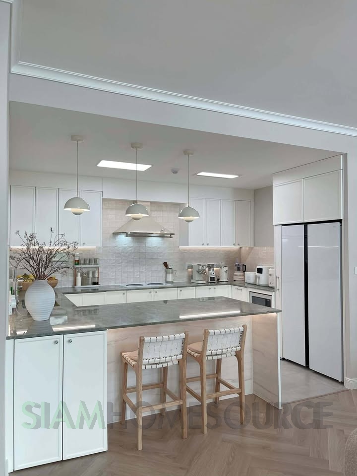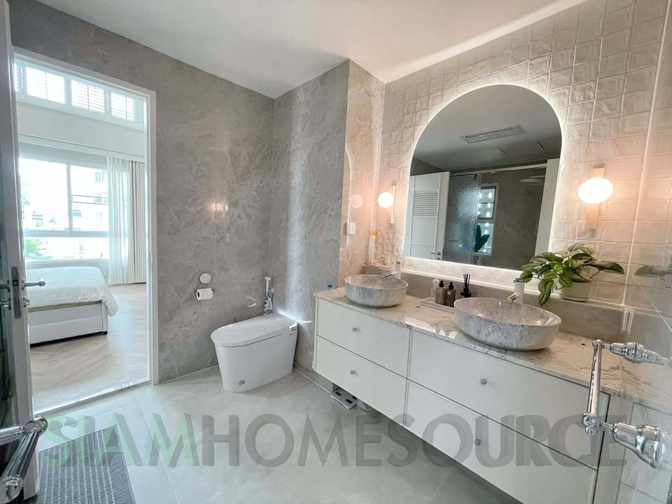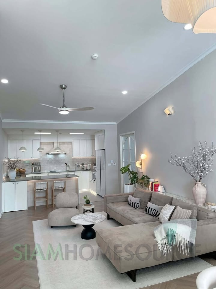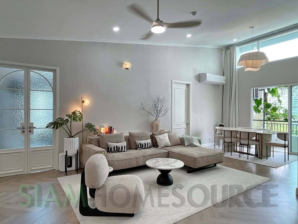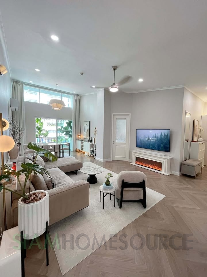 This Ekamai/Thonglor penthouse condo was recently fully renovated and features bright and airy minimalistic Nordic style design. The 3 bedroom penthouse unit situated on the top floor of the building has 3 bathrooms and is offered on the Bangkok real estate market for sale fully furnished. This luxury property is located in a very convenient area of Sukhumvit, this top floor 120 square meter penthouse is a perfect home for any small family or single professional that values easy and traffic free commute to school or work. The building is a pleasant lowrise which can easily access on foot with a few minute stroll to both Thong Lo BTS and Ekkamai BTS skytrain stations. There is also plenty of shopping, restaurants and cafes nearby to live in one of the top 3 most highly desired areas of Bangkok for a reasonable price of 18 million baht. The unit rents for over 100,000 baht per month so the price is a very solid investment property as well. The condo offers the standard luxury condo features of a communal swimming pool, fitness center, garden, as well as 24-hour security.