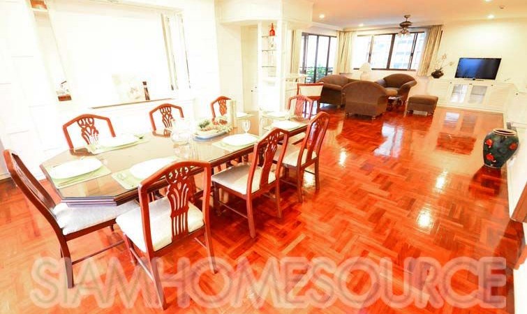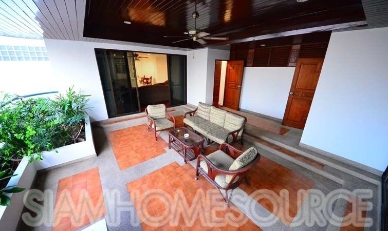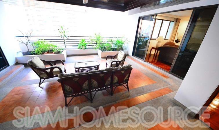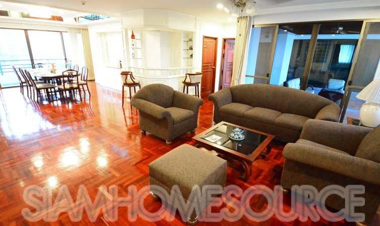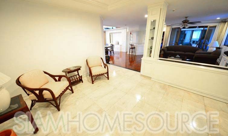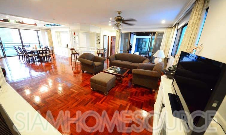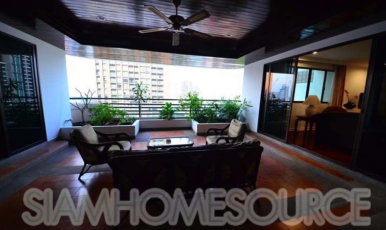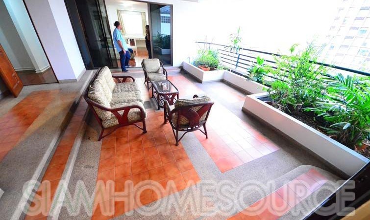 Perfect for those who like ample amounts of outdoor living space, this 360 square meter 3+1 bedroom, 4 bathroom Phrom Phong apartment features a tremendous amount of balcony space including a large, covered area big enough for a large family gathering. The apartment is large enough to comfortably accommodate for 10+ guests, perfect for those that like to entertain. The apartment is fully furnished which includes multiple living rooms, 3 spacious bedrooms (+ 1 office or storage room, that can be converted to a 4th bedroom) a full, enclosed kitchen which has gas cooking surface and an oven in addition to a spacious maid’s quarters.