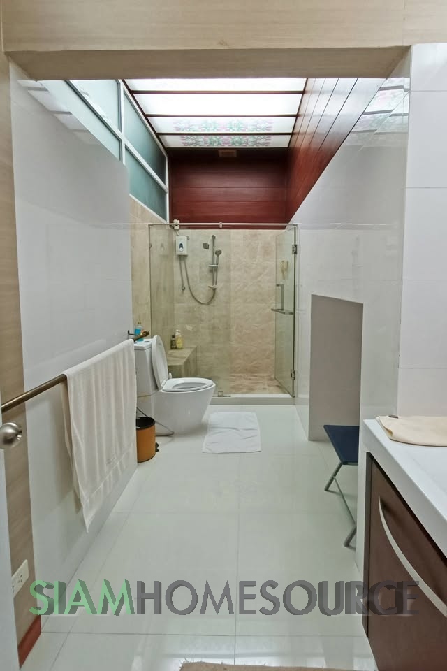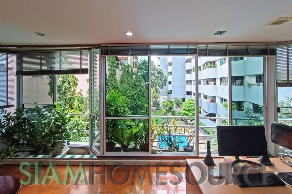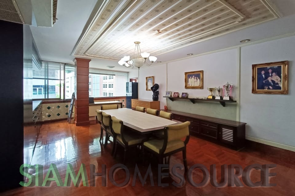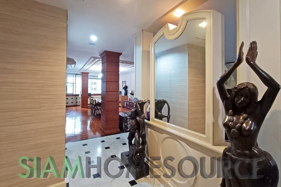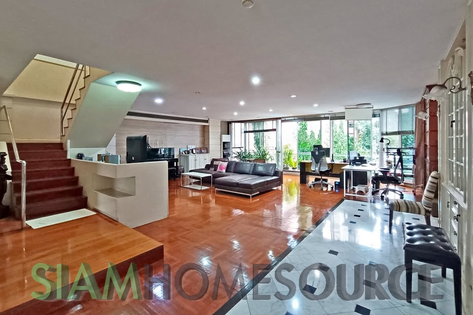 Whether you have been seeking the perfect Bangkok renovation project condo that has ample space and a great location or just enjoy the classic Thai style take on Western living, this spacious duplex is worth a look. The Phrom Phong duplex offers over 400 square meters of living space which is just not at all available in Bangkok condos built in the last 10 years. The duplex which features a garden and swimming pool view occupies 2 full floors for optimal privacy and has more than enough space to include extra features such as a home office or cinema room if that is your desire. The Phrom Phong duplex currently is built out with 4 bedrooms and 6 bathrooms and includes a home office room, a laundry/maid’s room with balcony and a closed kitchen. This renovation project also includes four fixed parking spaces in the condo parking garage.